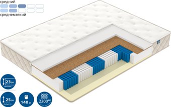 независимые пружины, Multipocket R2200, 550 шт/м², 7 зон, жесткость: среднемягкий/средний, 140 кг/место, высота: 23 см, чехол: трикотаж