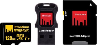 128 ГБ, класс 10, чтение: 70 МБ/с, запись: 10 МБ/с, адаптер