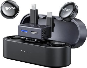 | Комплект поставки | - 2 передатчика - приемник - зарядный кейс - адаптер USB Type-С - адаптер Lightning - кабель USB Type-С - USB Type-A - 2 съемных ветрозащиты - 2 магнита - 2 магнитные клипсы - кабель 3.5 мм TRS - 3.5 мм TRS - чехол - документация |