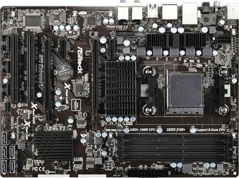 ATX, сокет AMD AM3/AM3+, чипсет AMD 970 + SB950, память 4xDDR3, слоты: