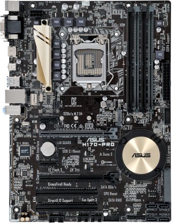 ATX, чипсет Intel H170, память 4xDDR4, слоты:, 1xM.2