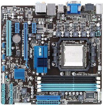 mATX, чипсет AMD 880G + SB710, память 4xDDR3, слоты: