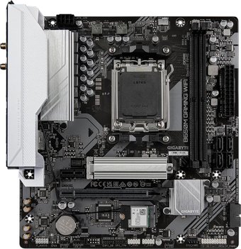 mATX, сокет AMD AM5, чипсет AMD B650, память 2xDDR5, слоты: 1xPCIe x16 4.0, 1xM.2, 802.11ac (Wi-Fi 5)+Bluetooth 4.2, 5+2+2 фаз питания