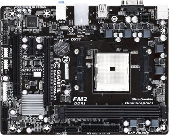 mATX, чипсет AMD A55, память 2xDDR3 до 2400 МГц, слоты:, 1xPCIe x1