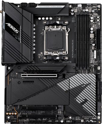 ATX, сокет AMD AM5, чипсет AMD X670, память 4xDDR5, слоты: 3xPCIe x16 4.0, 4xM.2, 802.11ax (Wi-Fi 6E)+Bluetooth 5.2, 16+2+2 фаз питания