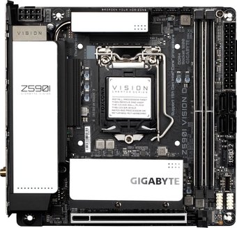 miniITX, чипсет Intel Z590, память 2xDDR4, слоты: 1xPCIe x16 4.0, 2xM.2, 802.11ax (Wi-Fi 6)+Bluetooth 5.1