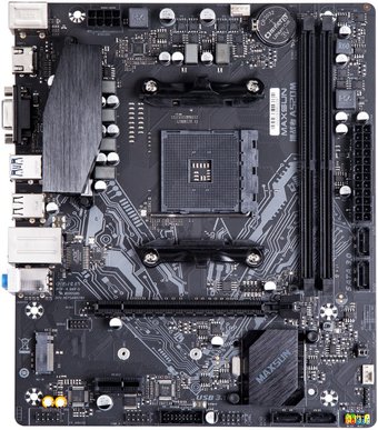 mATX, сокет AMD AM4, чипсет AMD A520, память 2xDDR4, слоты: 1xPCIe x16 3.0, 1xM.2, 6 фаз питания