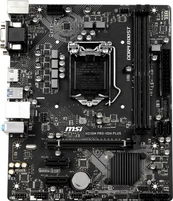 mATX, сокет Intel LGA1151 v2, чипсет Intel H310C (H310 R2.0), память 2xDDR4, слоты: 1xPCIe x16 3.0 и 2.0