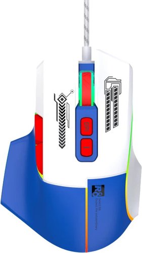полноразмерная игровая мышь, проводная USB Type-A, сенсор оптический 3600 dpi, 7 кнопок, колесо с нажатием, цвет белый/красный/синий