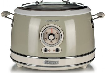 Для начала о самой компании Ariete . Это "дочка" Delonghi . Впервые я с продукцией этой фирмы я столкнулся когда подыскивал кофеварку и буквально случайно наткнулся на аппарат серии "винтаж". Мне он очень понравился, но что это за контора? Рекламы нет, отзывов немного. Помог тест одного блогера где он полностью разбирал кофеварку и там действительно стояли агрегаты Delonghi . Приобрел и остался очень доволен. Подбирая замену мультиварки, а у меня ещё один из первых Панасоников, хотел что-то простое, без лишних функций и наворотов. И надо же такому случиться, что Ариете делает и мультиварки, да ещё и в ретро дизайне. Купил. Это действительно то, что мне было нужно. Есть пять основных программ: каши, плов, тушение, жарка мяска. Можно готовить на пару. Любителям компьютерных технологий не сюда, здесь все "кондовое", механическое. Сделано очень изящно, но функционально. С любовью к деталям. В общем смело рекомендую любителям простых и красивых вещей, без десятков ненужных программ, таймеров и управления через смартфон.Достоинства: Дизайн. Простота использования. Адекватная цена.