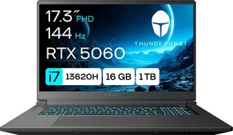 17.3" 1920 x 1080, IPS, 144 Гц, Intel Core i7 13620H, 16 ГБ DDR5, SSD 1024 ГБ, видеокарта NVIDIA GeForce RTX 5060 8 ГБ, без ОС, цвет крышки черный, аккумулятор 53.35 Вт·ч