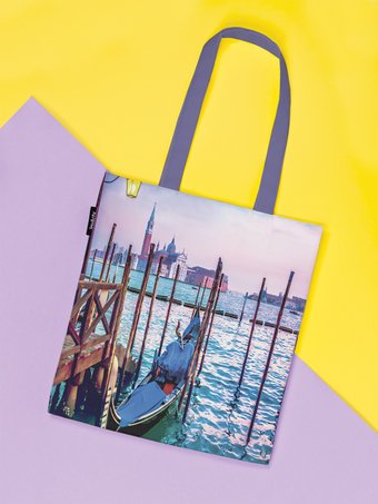Описание Сумка-шоппер «Гондола на пристани», ткань под лен, 42x38x7 см_x000D_ | |