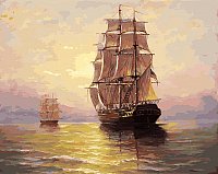 тематика морской пейзаж, 39 цветов в наборе, очень сложный уровень, холст на подрамнике/текстиль (хлопок), бежевый/коричневый, 50 x 40 см