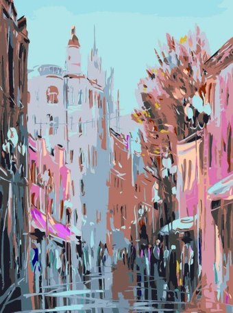 тематика городской пейзаж/замки/дома, 20 цветов в наборе, средний уровень, холст на подрамнике, голубой/розовый, 30 x 40 см