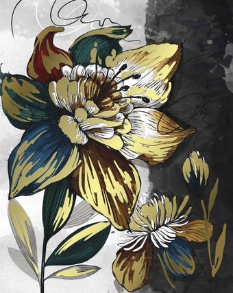 тематика цветы/растения, 15 цветов в наборе, средний уровень, холст на подрамнике, серый/желтый, 40 x 50 см