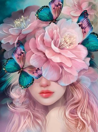 тематика люди/насекомые, 20 цветов в наборе, средний уровень, холст на подрамнике, бирюзовый/розовый, 30 x 40 см