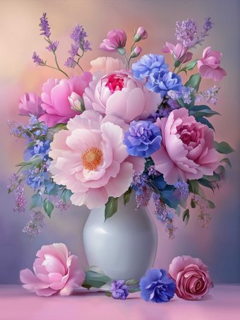тематика цветы/растения, 33 цветов в наборе, средний уровень, бумага, фиолетовый/розовый/синий, 30 x 40 см