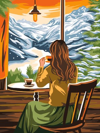 тематика природа/зима, 18 цветов в наборе, сложный уровень, холст на картоне, коричневый/синий, 30 x 40 см