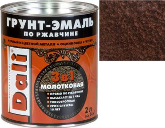 Грунт-эмаль Dali 3 в 1 по ржавчине молотковая 2 л (коричневый)