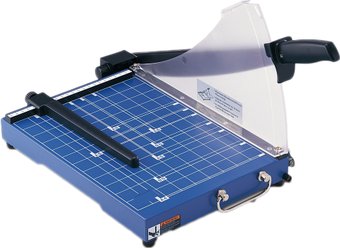 В целом все устраивает, режет хорошо, цена относительно небольшая, НО, то из-за чего я вернул его обратно, боковая планка(линейка) на которую планка крепится, криво прикреплена относительно ножа. Т.е. если к линейке прислонить бумагу, то на разрезе не будет прямого угла. Попробовал в магазине поменять на такой же- но тот тоже кривой!!! в итоге взял trio 13500- вроде ровный.Достоинства: не дорогой