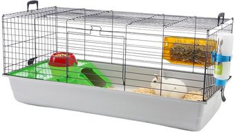 клетка, для грызунов (морская свинка, кролик), пластик/эмалированная сталь, светло-серый