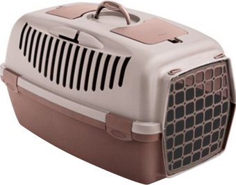 переноска, для кошек, для собак, пластик, максимальный вес питомца: 12 кг, коричневый/розовый