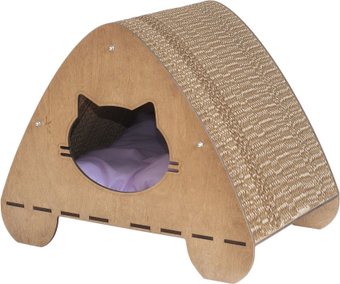 Легкий, просторный домик. Картонная крыша, перинка и приятный запах древесины, на полу стоит устойчиво. Кошка домик не игнорит, отдыхает там регулярно.