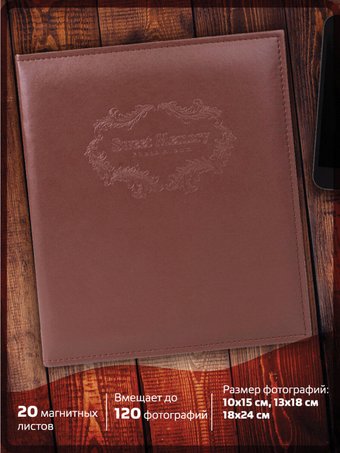 универсальный, 120 фотографий, 10x15 см/13x18 см/18x24 см, твердый переплет, с магнитными листами, коричневый