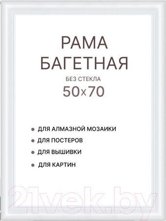 1 фотография, 50x70 см, материал рамы МДФ, материал защиты изображения стекло, белый, 50 x 70 см