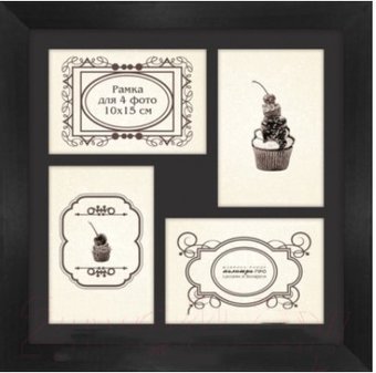 4 фотографии, 10x15 см, материал рамы дерево, материал защиты изображения стекло, с паспарту, черный