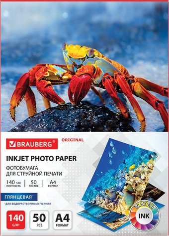 глянцевая фотобумага, плотность 140 г/кв.м, A4, струйная печать, 50 листов