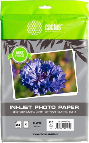 матовая фотобумага, плотность 120 г/кв.м, A4, струйная печать, 50 листов