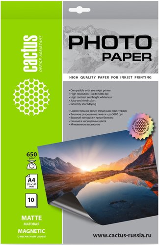 матовая бумага с магнитным слоем, плотность 650 г/кв.м, A4, струйная печать, 10 листов
