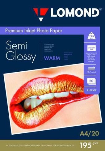 полуглянцевая фотобумага, плотность 195 г/кв.м, A4, струйная печать, 20 листов