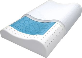 Описание Эргономичная подушка с двумя валиками из вискоэластичного материала MemoryFoam c охлаждающим слоем геля. | |