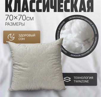 спальная подушка квадратная (70x70 см), наполнитель: полиэстер (полиэфир)/силиконизированное волокно, чехол: полулен/поликоттон
