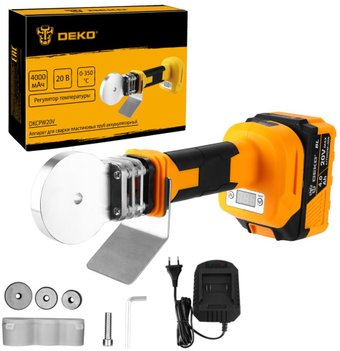 Описание Аппарат для сварки полипропиленовых труб аккумуляторный DEKO DKCPW20V предназначен для сварки полипропиленовых труб и фитингов между собой. | |