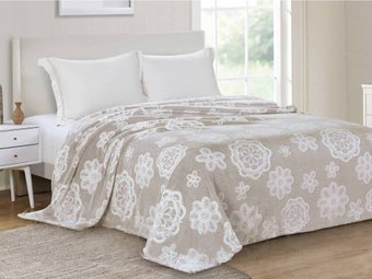 плед, 180x200, велсофт (полиэстер), бежевый/белый
