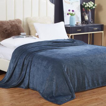 плед (классический), 180x200, 200 г/м², велсофт (полиэстер), синий