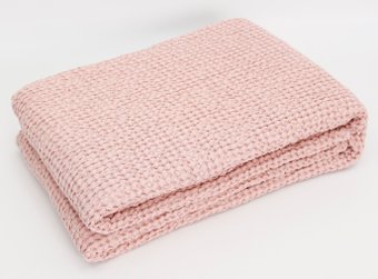 плед (классический), 160x180, 205 г/м², текстиль (лен/хлопок), розовый