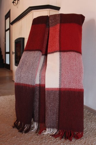 плед (классический), 170x210, текстиль (шерсть), новозеландская шерсть 100%, бежевый/красный