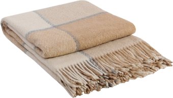плед (классический) (полиэстер/шерсть), бежевый/белый/серый