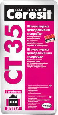 Ceresit CT 35 применяется для выполнения декоративных тонкослойных штукатурок на бетонных и гипсовых основаниях, традиционных штукатурках, ДСП или гипсокартоне. Штукатурка может также использоваться в бесшовных системах утепления наружных стен зданий с использованием фасадных плит из пенополистирола или минеральной ваты.