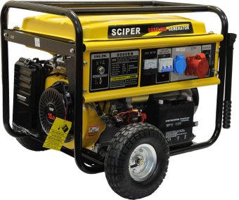 бензиновый, максимальная мощность: 6.5 кВт, номинальная мощность: 6 кВт, запуск: ручной/электростартер, время непрерывной работы: 8 ч, 85 кг
