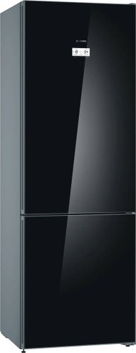 отдельностоящий, полный No Frost, сенсорное управление, класс A++, полезный объём: 435 л (338 + 128 л), зона свежести, перенавешиваемые двери, выдвижная полка, лоток для яиц, отделка: стекло, 70x67x203 см, черный
