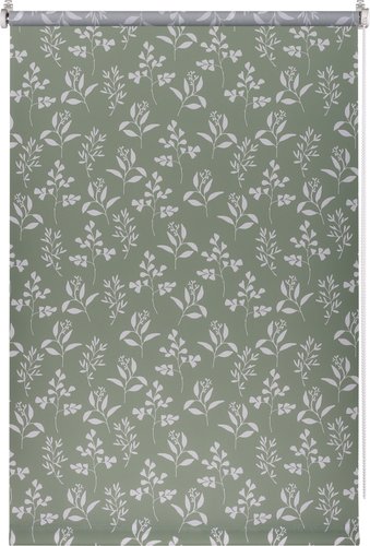мини рулонная, затеняющие (Dim-out), 80x160 см, крепление к раме/к потолку/к стене, полиэстер, зеленый/рисунок