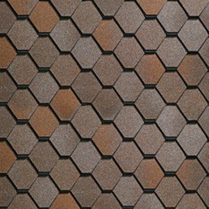 битумная черепица, матовая, гарантия 55 лет, цвет желтый/коричневый/серый