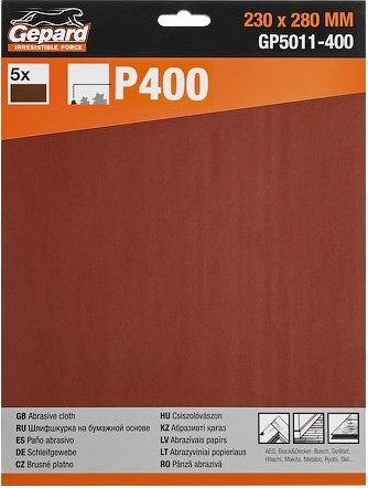 металл/дерево/ДСП/МДФ/пластик/гипсокартон/штукатурка, зернистость 400, 5 в наборе, сухая шлифовка, длина 280 мм, ширина/диаметр 230 мм