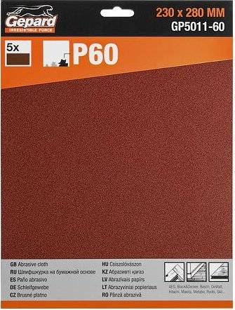 металл/дерево/ДСП/МДФ/пластик/гипсокартон/штукатурка, зернистость 60, 5 в наборе, сухая шлифовка, длина 280 мм, ширина/диаметр 230 мм