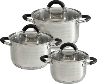 набор кастрюль, нержавеющая сталь, покрытие отсутствует, крышка стеклянная